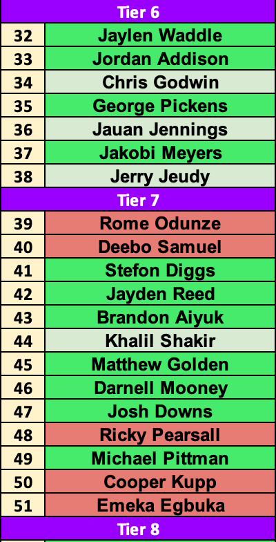 Here’s a quick look at one of my wide receiver tiers from earlier this summer in The Fantasy Blueprint: