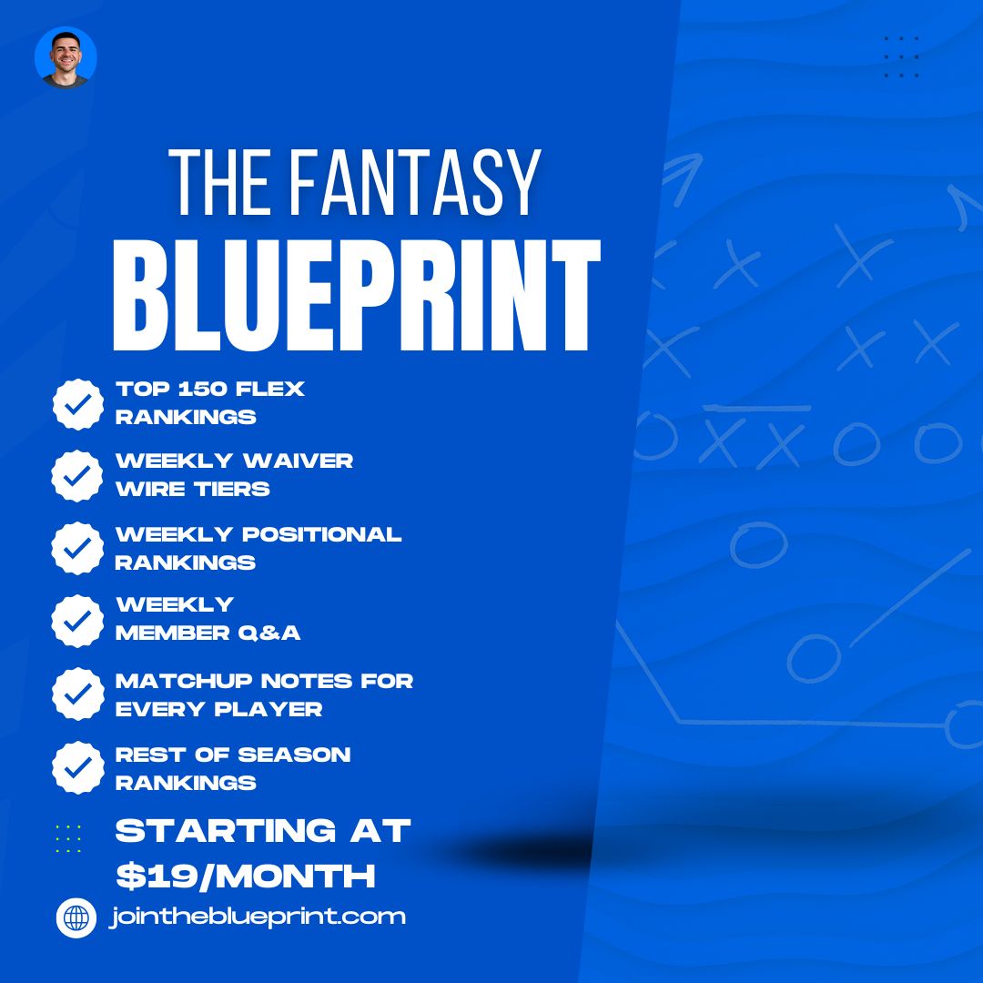 Get the Top 40 waiver wire tiers, weekly positional rankings, trade advice, and more Inside The Fantasy Blueprint by clicking here